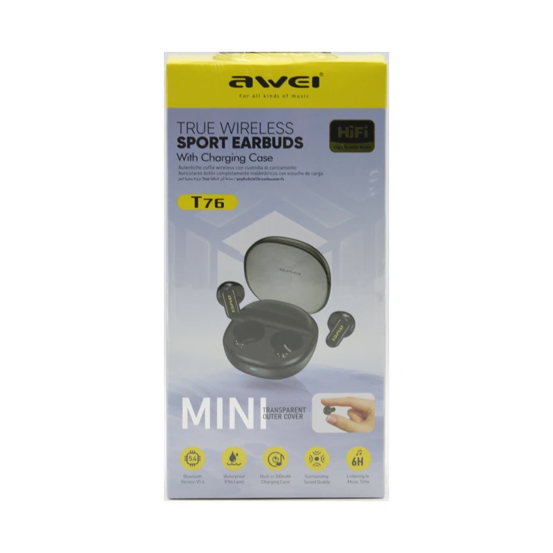 ایرپاد AWEI مدل T76 با کیفیت صدای عالی، طراحی راحت و ارگونومیک، اتصال پایدار و عمر باتری طولانی، یک انتخاب فوقالعاده برای افرادی است که به دنبال یک ایرپاد با کیفیت برای استفادههای روزمره، ورزش و سفر هستند.