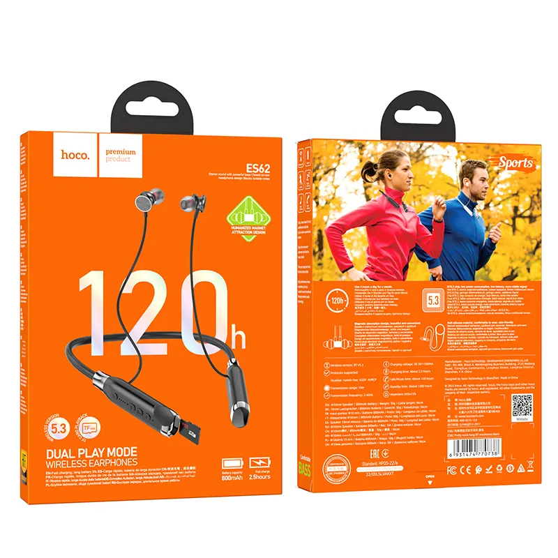 هندزفری گردنی هوکو مدل ES62 با طراحی مدرن و ویژگیهای پیشرفته، تجربهای بینظیر از شنیدن موسیقی و مکالمه را برای کاربران فراهم میکند. این محصول با مدت زمان مکالمه و پخش موسیقی تا ۱۲۰ ساعت و مدت زمان آمادهبهکار ۱۲۰۰ ساعت، همراهی مطمئن برای استفاده روزانه و حتی در سفرهای طولانی است.