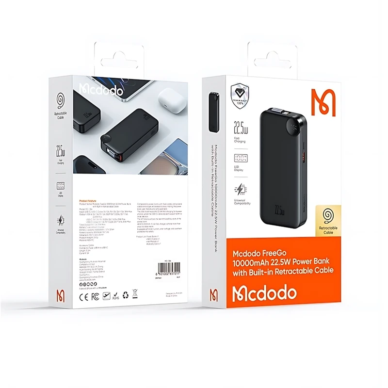 پاوربانک مک دودو مدل MC-386 با ظرفیت 10000 میلیآمپرساعت، یک شاهکار شیک و کاربردی که شارژ دستگاههای شما را با سرعت، ایمنی و طراحی بیمانند به اوج میرساند. این پاوربانک با بدنهای از پلیکربنات ضدحریق (PC) و پلیمر ABS، طراحی لاکچری و مینیمال را ارائه میدهد. این محصول جمعوجور بهراحتی در جیب شلوار جای میگیرد و با استانداردهای حملونقل هوایی بینالمللی، همراهی بیدغدغه در پروازها را فراهم میکند. MC-386 با توان خروجی حداکثر 22.5 وات و پشتیبانی از پروتکلهای شارژ سریع PD، QC، FCP، SCP، VOOC و AFC، از طریق سه پورت خروجی (یک پورت تایپسی 20 وات، یک کابل متصل تایپسی جمعشونده 20 وات به طول 65 سانتیمتر و یک پورت USB-A 22.5 وات) امکان شارژ همزمان سه دستگاه را فراهم میکند. خروجی کل 15 وات (5V~3A) برای ترکیب تایپسی و USB-A، کارایی را به اوج میرساند. دو پورت ورودی تایپسی 18 واتی (یک پورت و یک کابل متصل)، شارژ سریع پاوربانک را تضمین میکنند، و نمایشگر دیجیتال، درصد شارژ باقیمانده را بهصورت دقیق نشان میدهد. این پاوربانک میتواند گوشی آیفون 15 را 1.5 مرتبه و سامسونگ S23 را 1.4 مرتبه بهصورت کامل شارژ کند.تراشه هوشمند داخلی، جریان و ولتاژ مناسب هر دستگاه را بهصورت خودکار تشخیص داده و توان خروجی را تنظیم میکند تا شارژی ایمن و بهینه ارائه دهد. فناوری MultiProtect، دستگاه شما را در برابر اتصال کوتاه، نوسانات آمپر و ولتاژ و افزایش حرارت محافظت میکند، و طراحی با انتقال حرارت عالی، از تجمع گرما جلوگیری میکند. کابل کوتاه تایپسی همراه، استفاده را آسانتر میکند. با گواهینامههای ایمنی CE، RoHS و FCC، این پاوربانک استانداردهای کیفی و حفاظتی را رعایت میکند. اگر به دنبال محصولی هستید که شارژ سریع، طراحی لاکچری و قابلیت حمل آسان را در کنار هم ارائه دهد، MC-386 با کابل متصل جمعشوندهاش انتخابی است که تجربه شارژ شما را متحول میکند.